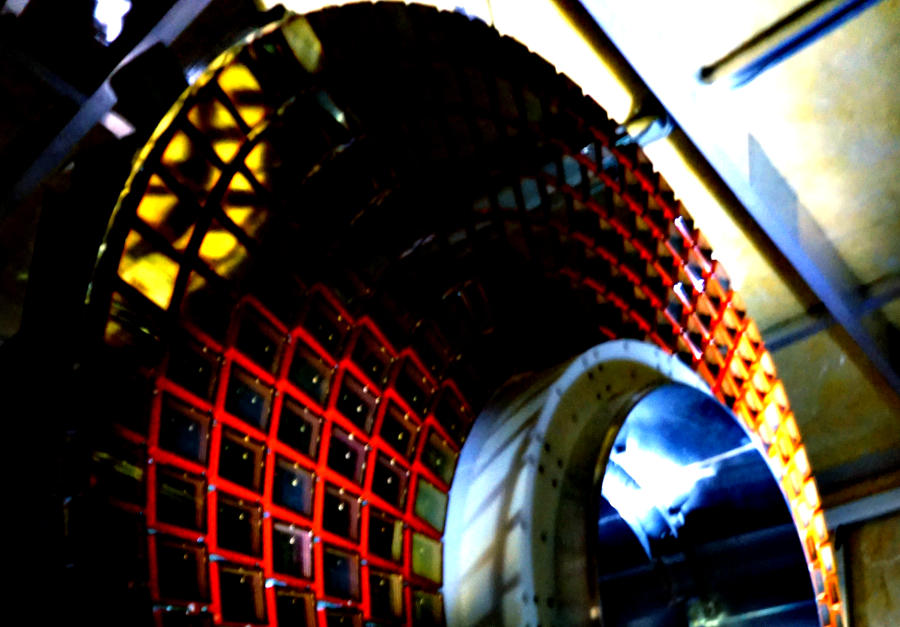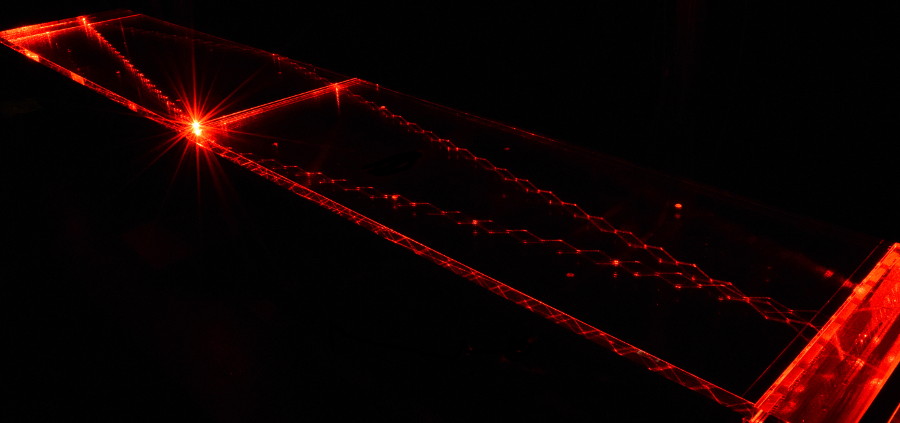 Fig. 3.7 Internal reflection of a laser inside one of the 16 bars of the TOP detector.#