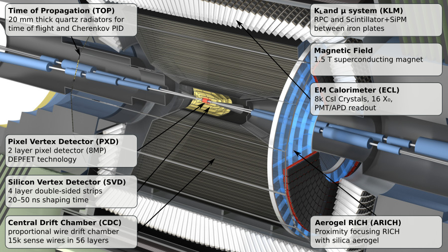 Fig. 3.4 Closeup of the Belle II detector indicating all the different sub detectors.#